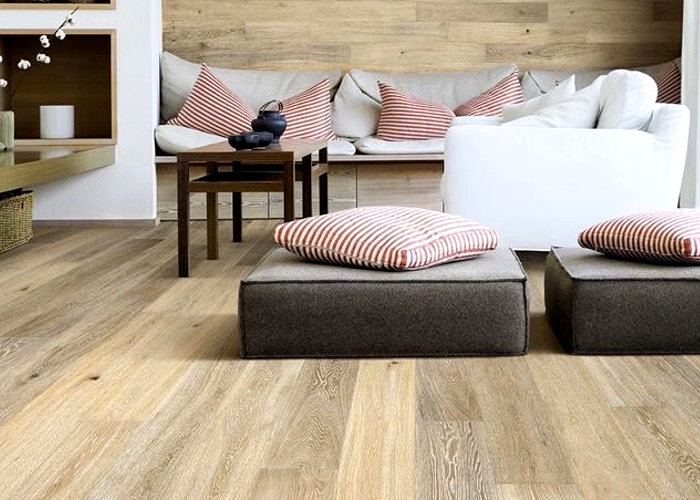 Die Dielen bestehen aus 6 Trägerschichten, die mit einer zusätzlichen 5 mm dicken Nutzschicht aus Eichenholz verleimt sind. Im klassischen Landhausdielen Format sorgt das Parkett für einen rustikalen Charme der für jede Art von Raum geeignet ist. Die Böden sind alle Fußbodenheizung geeignet, wobei sich in diesem Fall eine vollflächige Verklebung empfiehlt. Bei einer schwimmenden Verlegung mit Klick-System empfiehlt sich die Verlegung einer Trittschalldämmung. Aufgrund seiner temperaturausgleichenden Eigenschaften bietet das Eichenparkett eine gute Basis, für ein angenehmes Raumklima.